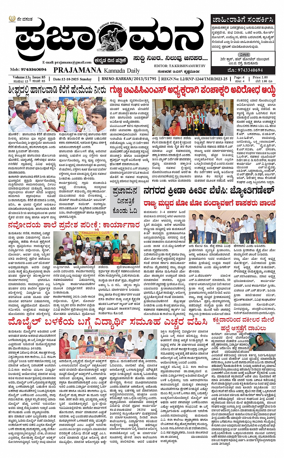 ಪ್ರಜಾಮನ 12 OCTOBER 2025 October 12, 2025 << First << 1 >> Last >> Page 1Page 2Page 3Page 4 × ಪ್ರಜಾಮನ 12 OCTOBER 2025 PRAJAMANA-page-001PRAJAMANA-page-002PRAJAMANA-page-003PRAJAMANA-page-004 << First << 1 >> Last >> PRAJAMANA-page-001PRAJAMANA-page-002PRAJAMANA-page-003PRAJAMANA-page-004 PRAJAMANA-page-001