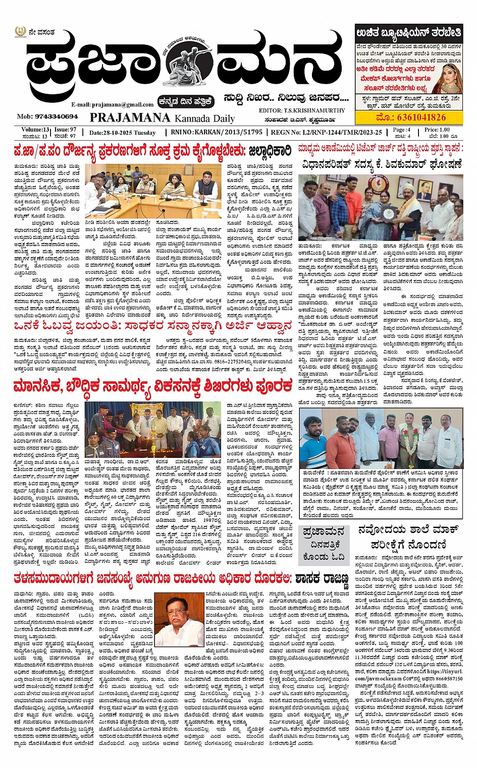 ಪ್ರಜಾಮನ 28 OCTOBER 2025 October 28, 2025 << First << 1 >> Last >> Page 1Page 2Page 3Page 4 × ಪ್ರಜಾಮನ 28 OCTOBER 2025 PRAJAMANA-page-001PRAJAMANA-page-002PRAJAMANA-page-003PRAJAMANA-page-004 << First << 1 >> Last >> PRAJAMANA-page-001PRAJAMANA-page-002PRAJAMANA-page-003PRAJAMANA-page-004 PRAJAMANA-page-001