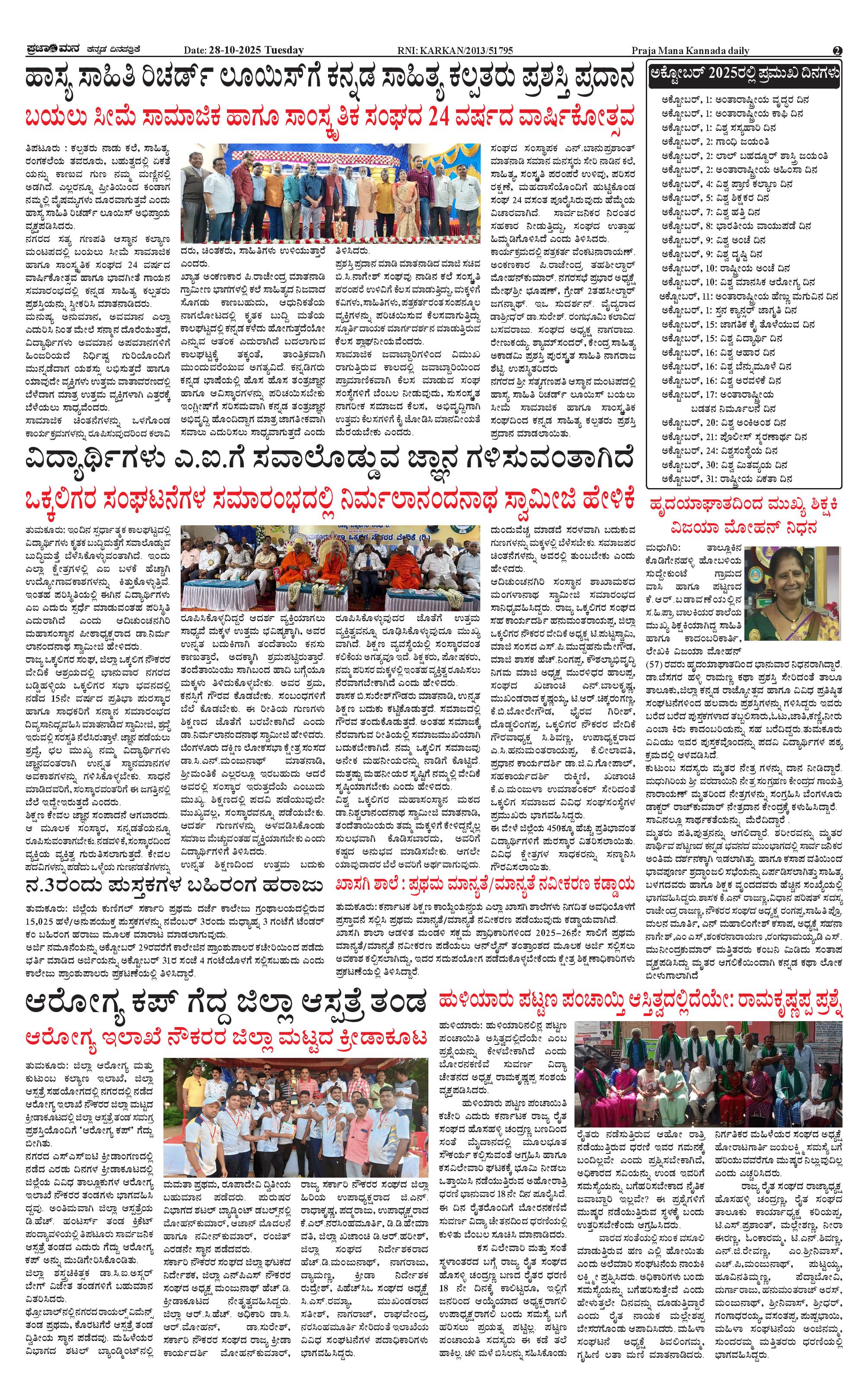 ಪ್ರಜಾಮನ 28 OCTOBER 2025 Page: 2 October 28, 2025 << First << 2 >> Last >> Page 1Page 2Page 3Page 4 × ಪ್ರಜಾಮನ 28 OCTOBER 2025 PRAJAMANA-page-001PRAJAMANA-page-002PRAJAMANA-page-003PRAJAMANA-page-004 << First << 2 >> Last >> PRAJAMANA-page-001PRAJAMANA-page-002PRAJAMANA-page-003PRAJAMANA-page-004 PRAJAMANA-page-002