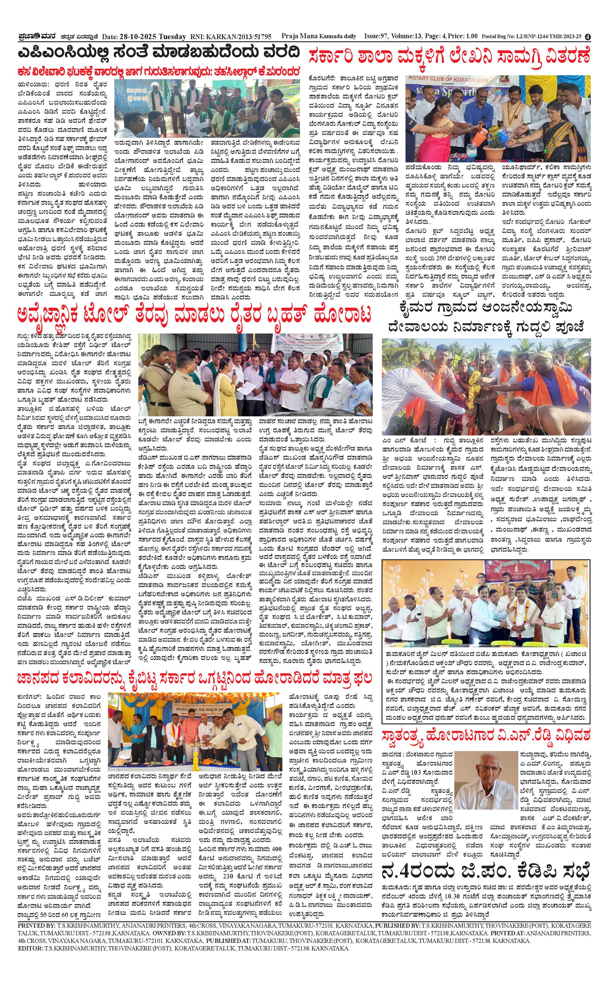 ಪ್ರಜಾಮನ 28 OCTOBER 2025 Page: 4 October 28, 2025 << First << 4 >> Last >> Page 1Page 2Page 3Page 4 × ಪ್ರಜಾಮನ 28 OCTOBER 2025 PRAJAMANA-page-001PRAJAMANA-page-002PRAJAMANA-page-003PRAJAMANA-page-004 << First << 4 >> Last >> PRAJAMANA-page-001PRAJAMANA-page-002PRAJAMANA-page-003PRAJAMANA-page-004 PRAJAMANA-page-004