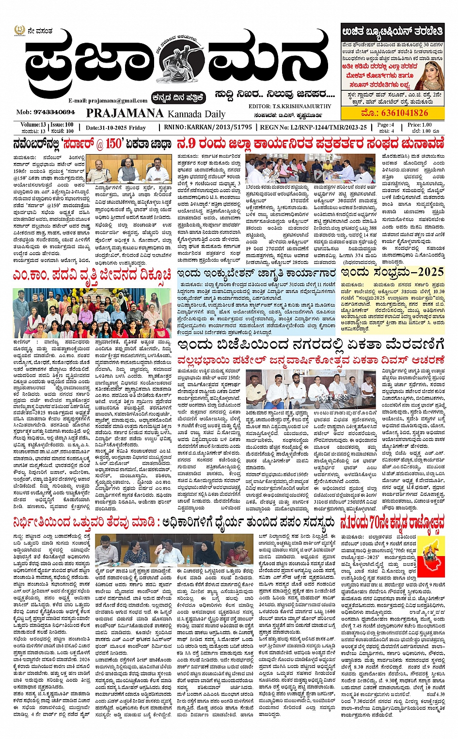ಪ್ರಜಾಮನ 31 OCTOBER 2025 October 31, 2025 << First << 1 >> Last >> Page 1Page 2Page 3Page 4 × ಪ್ರಜಾಮನ 31 OCTOBER 2025 PRAJAMANA-page-001PRAJAMANA-page-002PRAJAMANA-page-003PRAJAMANA-page-004 << First << 1 >> Last >> PRAJAMANA-page-001PRAJAMANA-page-002PRAJAMANA-page-003PRAJAMANA-page-004 PRAJAMANA-page-001