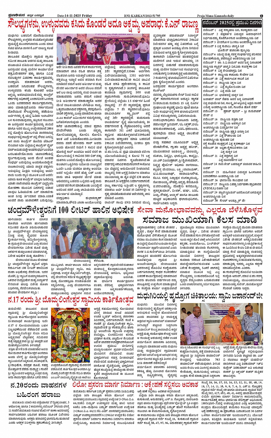 ಪ್ರಜಾಮನ 14 NOVEMBER 2025 Page: 2 November 14, 2025 << First << 2 >> Last >> Page 1Page 2Page 3Page 4 × ಪ್ರಜಾಮನ 14 NOVEMBER 2025 PRAJAMANA-page-001PRAJAMANA-page-002PRAJAMANA-page-003PRAJAMANA-page-004 << First << 2 >> Last >> PRAJAMANA-page-001PRAJAMANA-page-002PRAJAMANA-page-003PRAJAMANA-page-004 PRAJAMANA-page-002