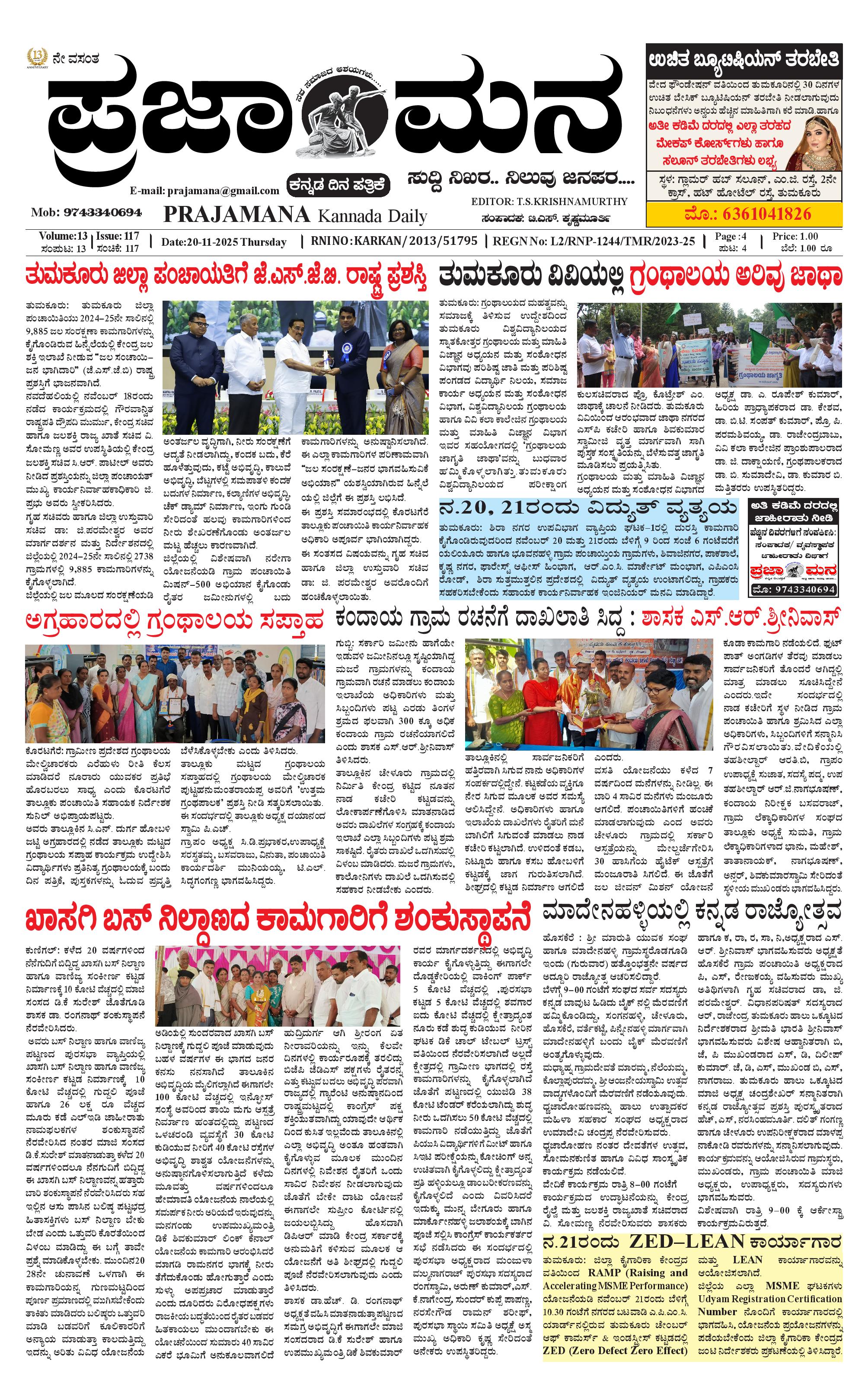ಪ್ರಜಾಮನ 20 NOVEMBER 2025 November 20, 2025 << First << 1 >> Last >> Page 1Page 2Page 3Page 4 × ಪ್ರಜಾಮನ 20 NOVEMBER 2025 PRAJAMANA-page-001PRAJAMANA-page-002-1PRAJAMANA-page-003PRAJAMANA-page-004 << First << 1 >> Last >> PRAJAMANA-page-001PRAJAMANA-page-002-1PRAJAMANA-page-003PRAJAMANA-page-004 PRAJAMANA-page-001