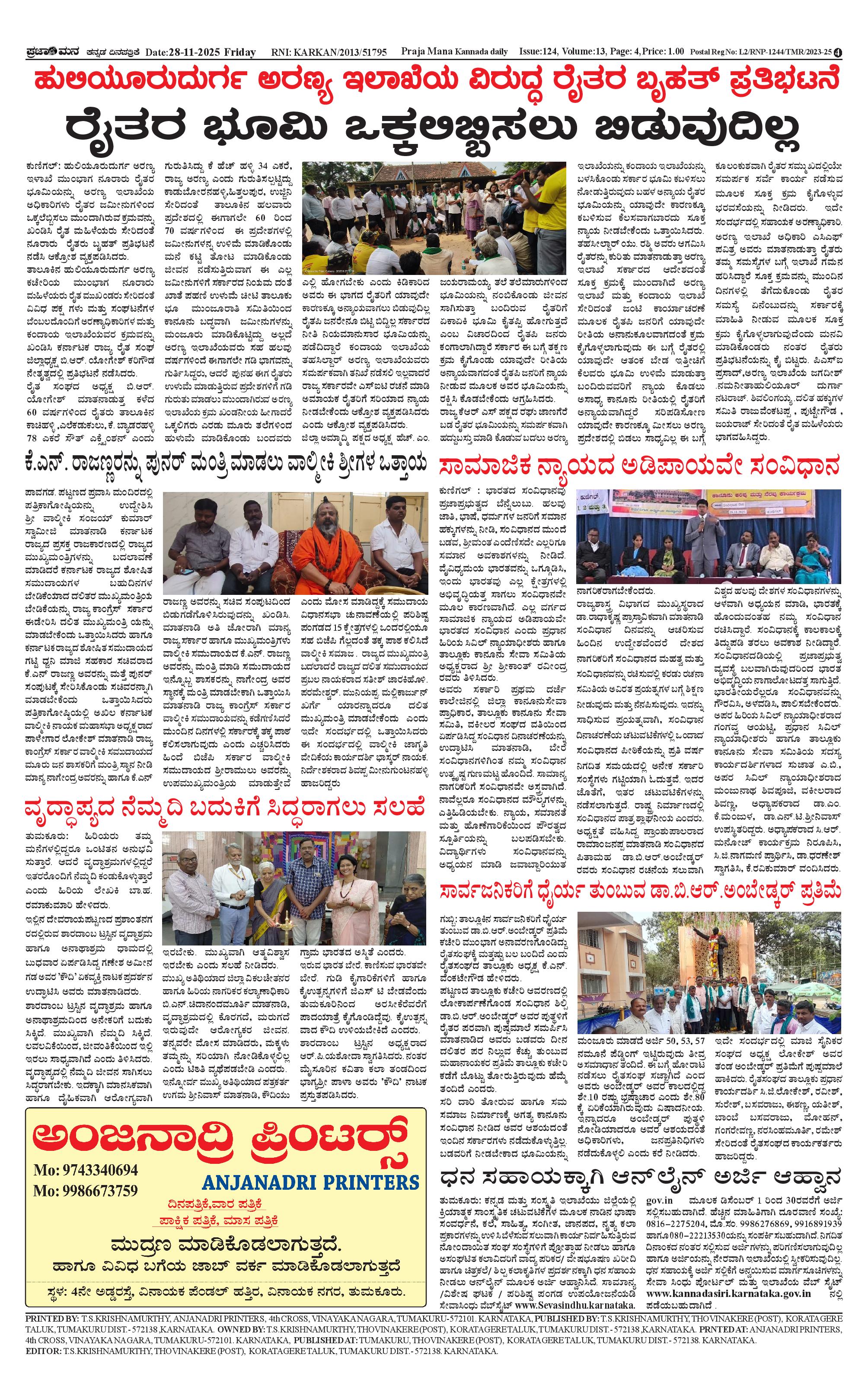 ಪ್ರಜಾಮನ 28 NOVEMBER 2025 Page: 4 November 28, 2025 << First << 4 >> Last >> Page 1Page 2Page 3Page 4 × ಪ್ರಜಾಮನ 28 NOVEMBER 2025 PRAJAMANA-page-001PRAJAMANA-page-002PRAJAMANA-page-003PRAJAMANA-page-004 << First << 4 >> Last >> PRAJAMANA-page-001PRAJAMANA-page-002PRAJAMANA-page-003PRAJAMANA-page-004 PRAJAMANA-page-004