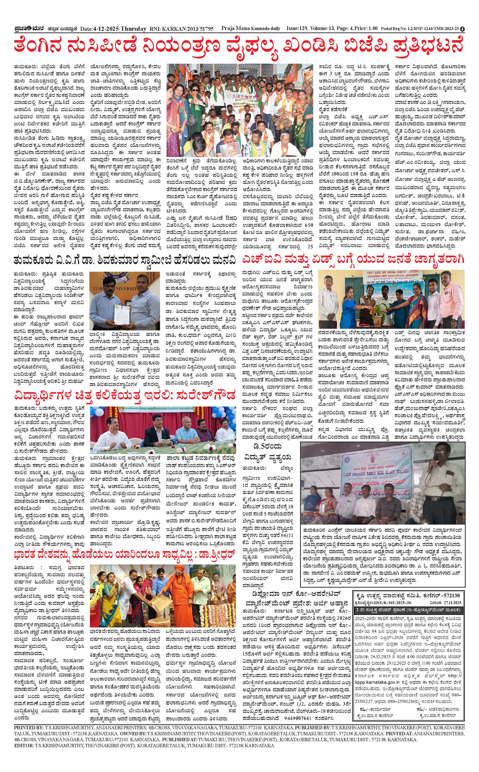 ಪ್ರಜಾಮನ 04 DECEMBER 2025 Page: 4 December 04, 2025 << First << 4 >> Last >> Page 1Page 2Page 3Page 4 × ಪ್ರಜಾಮನ 04 DECEMBER 2025 PRAJAMANA-page-001PRAJAMANA-page-002PRAJAMANA-page-003PRAJAMANA-page-004 << First << 4 >> Last >> PRAJAMANA-page-001PRAJAMANA-page-002PRAJAMANA-page-003PRAJAMANA-page-004 PRAJAMANA-page-004
