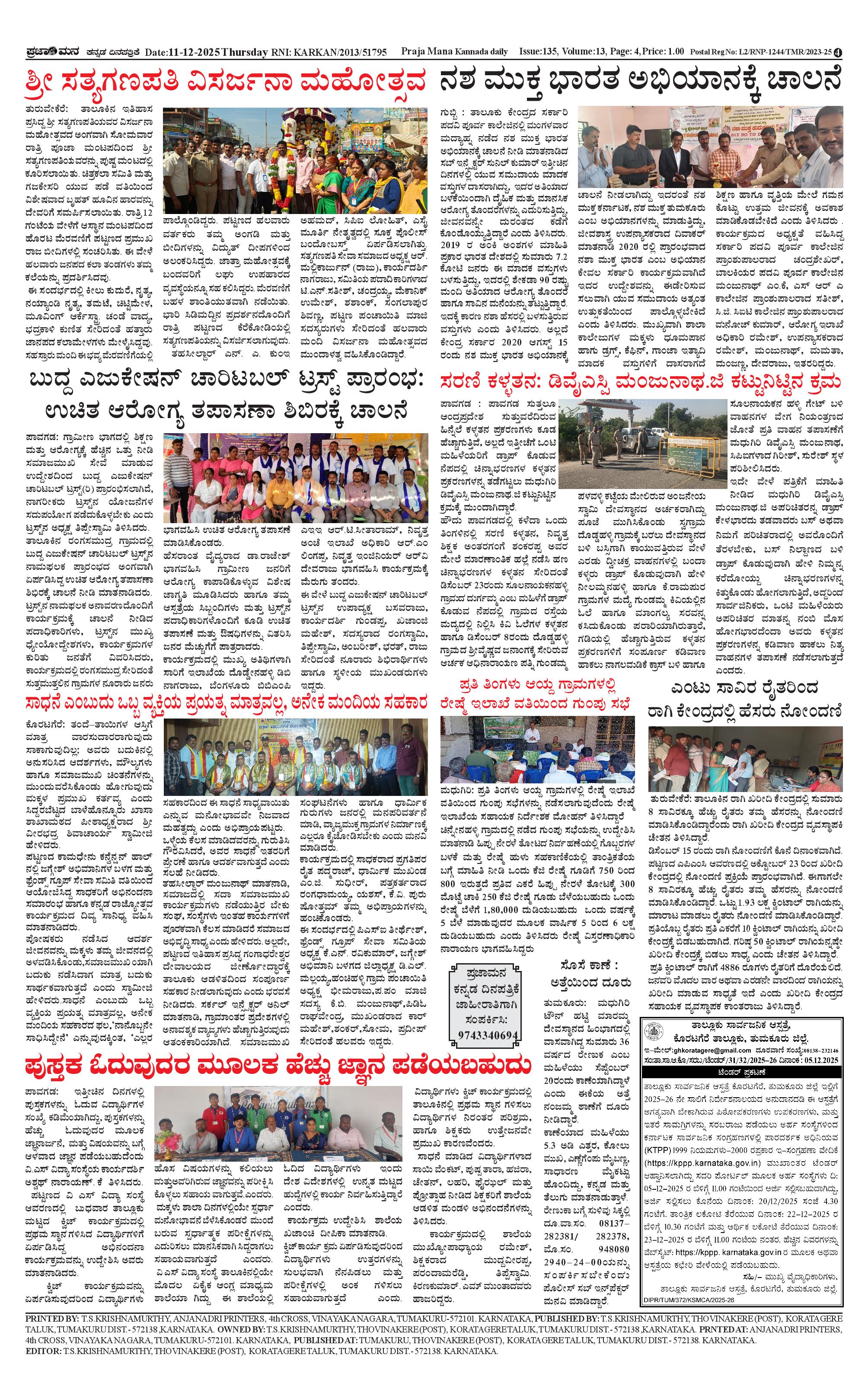 ಪ್ರಜಾಮನ 11 DECEMBER 2025 Page: 4 December 11, 2025 << First << 4 >> Last >> Page 1Page 2Page 3Page 4 × ಪ್ರಜಾಮನ 11 DECEMBER 2025 PRAJAMANA 7-page-001PRAJAMANA 7-page-002-1PRAJAMANA 7-page-003PRAJAMANA 7-page-004 << First << 4 >> Last >> PRAJAMANA 7-page-001PRAJAMANA 7-page-002-1PRAJAMANA 7-page-003PRAJAMANA 7-page-004 PRAJAMANA 7-page-004