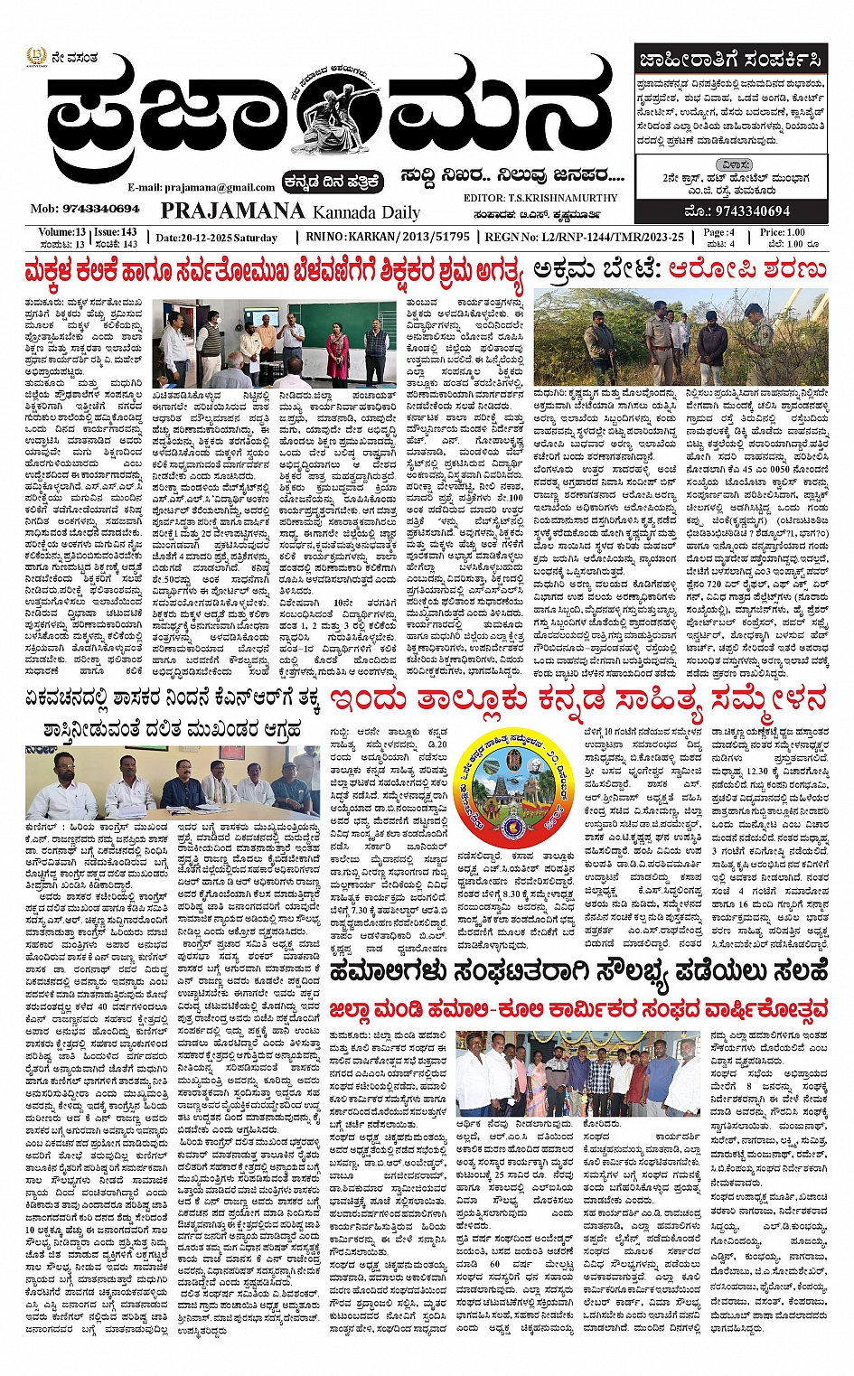 ಪ್ರಜಾಮನ 20 DECEMBER 2025 December 20, 2025 << First << 1 >> Last >> Page 1Page 2Page 3Page 4 × ಪ್ರಜಾಮನ 20 DECEMBER 2025 PRAJAMANA 7-page-001PRAJAMANA 7-page-002PRAJAMANA 7-page-003PRAJAMANA 7-page-004 << First << 1 >> Last >> PRAJAMANA 7-page-001PRAJAMANA 7-page-002PRAJAMANA 7-page-003PRAJAMANA 7-page-004 PRAJAMANA 7-page-001
