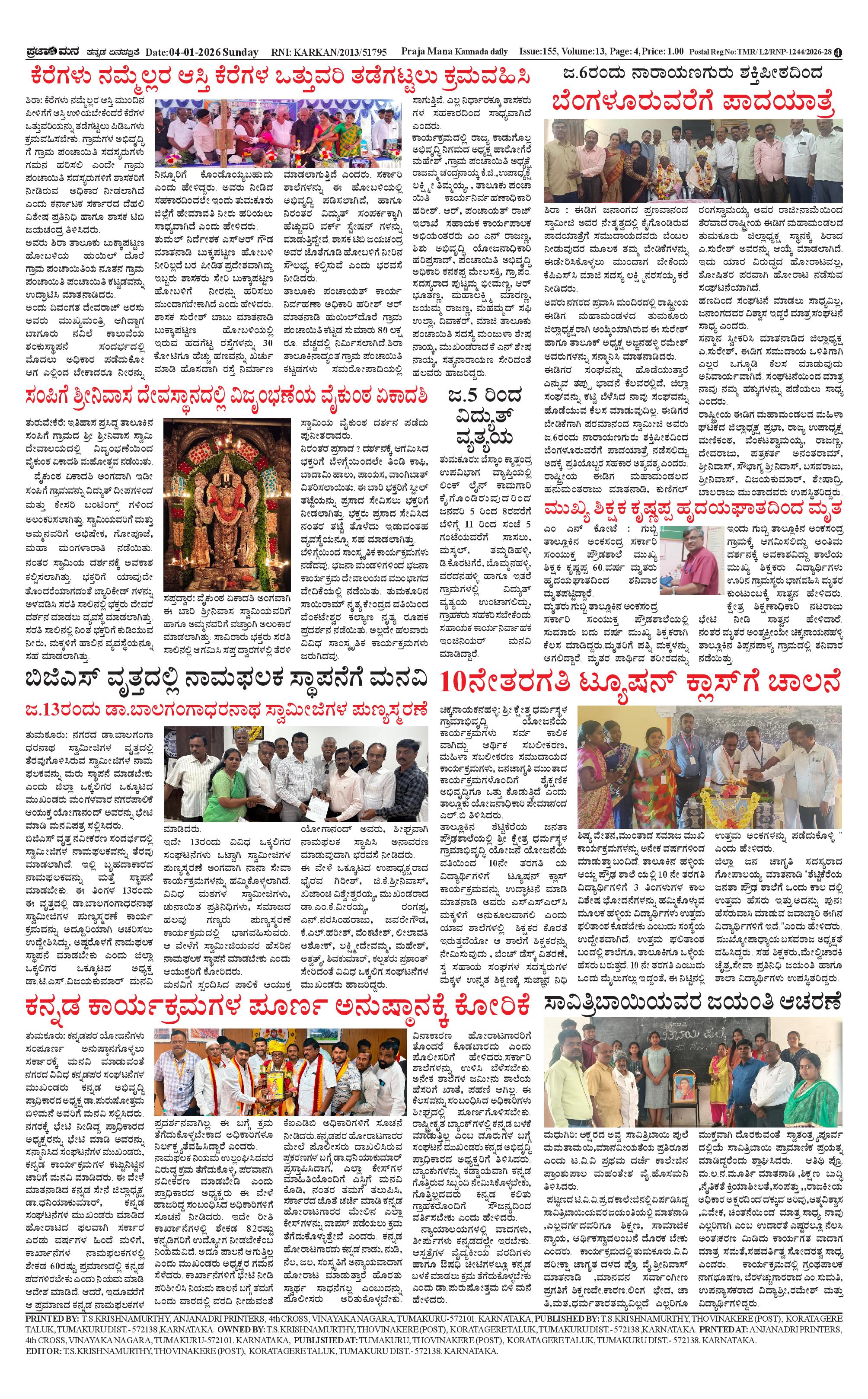 ಪ್ರಜಾಮನ 04 JANUARY 2026 Page: 4 January 04, 2026 << First << 4 >> Last >> Page 1Page 2Page 3Page 4 × ಪ್ರಜಾಮನ 04 JANUARY 2026 PRAJAMANA-page-001PRAJAMANA-page-002PRAJAMANA-page-003PRAJAMANA-page-004 << First << 4 >> Last >> PRAJAMANA-page-001PRAJAMANA-page-002PRAJAMANA-page-003PRAJAMANA-page-004 PRAJAMANA-page-004