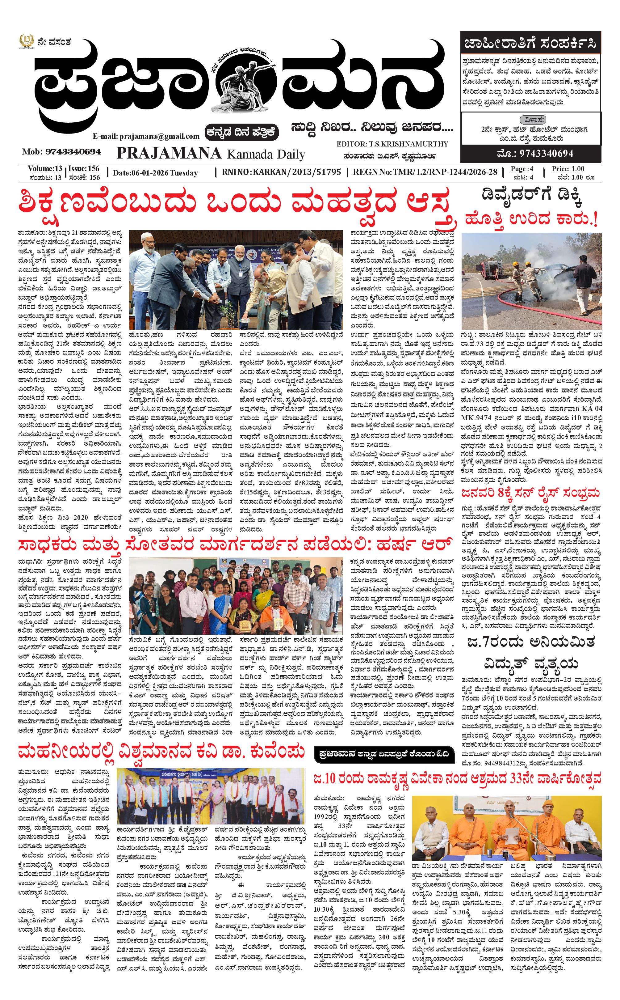 ಪ್ರಜಾಮನ 06 JANUARY 2026 January 06, 2026 << First << 1 >> Last >> Page 1Page 2Page 3Page 4 × ಪ್ರಜಾಮನ 06 JANUARY 2026 PRAJAMANA-page-001PRAJAMANA-page-002PRAJAMANA-page-003PRAJAMANA-page-004 << First << 1 >> Last >> PRAJAMANA-page-001PRAJAMANA-page-002PRAJAMANA-page-003PRAJAMANA-page-004 PRAJAMANA-page-001