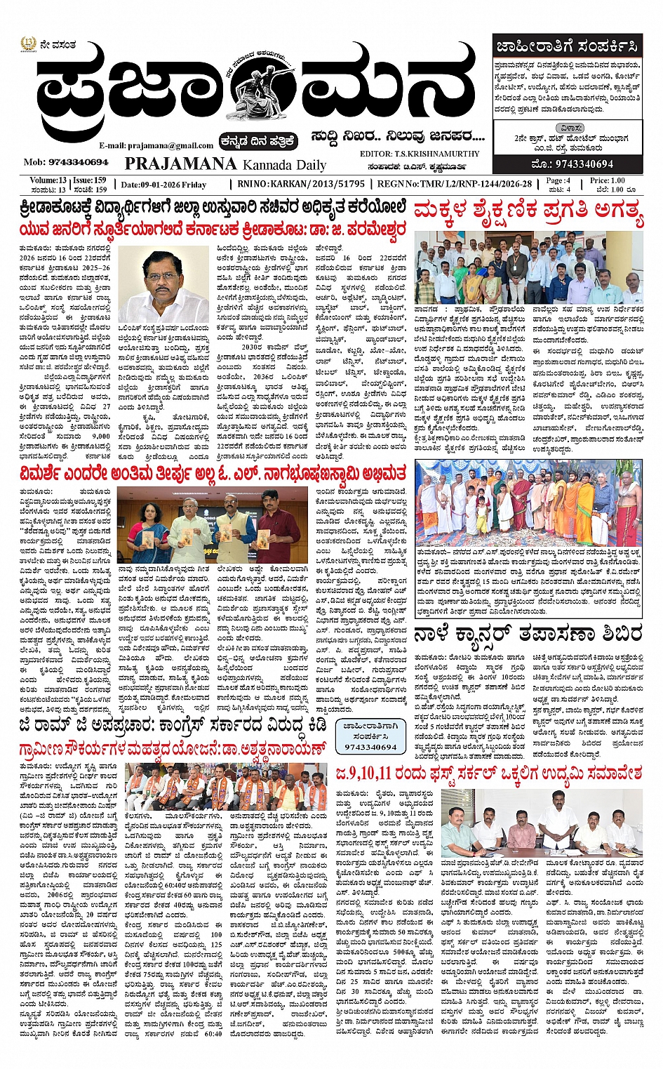 ಪ್ರಜಾಮನ 09 JANUARY 2026 January 09, 2026 << First << 1 >> Last >> Page 1Page 2Page 3Page 4 × ಪ್ರಜಾಮನ 09 JANUARY 2026 PRAJAMANA-page-001PRAJAMANA-page-002PRAJAMANA-page-003PRAJAMANA-page-004 << First << 1 >> Last >> PRAJAMANA-page-001PRAJAMANA-page-002PRAJAMANA-page-003PRAJAMANA-page-004 PRAJAMANA-page-001