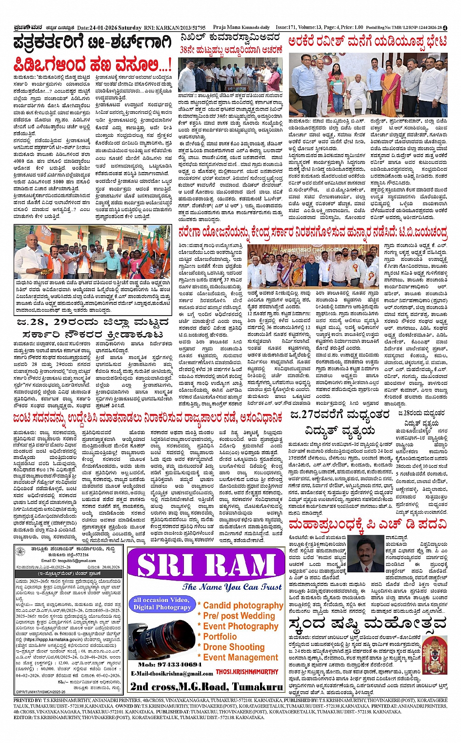 ಪ್ರಜಾಮನ 24 JANUARY 2026 Page: 4 January 24, 2026 << First << 4 >> Last >> Page 1Page 2Page 3Page 4 × ಪ್ರಜಾಮನ 24 JANUARY 2026 PRAJAMANA-page-001PRAJAMANA-page-002PRAJAMANA-page-003PRAJAMANA-page-004 << First << 4 >> Last >> PRAJAMANA-page-001PRAJAMANA-page-002PRAJAMANA-page-003PRAJAMANA-page-004 PRAJAMANA-page-004