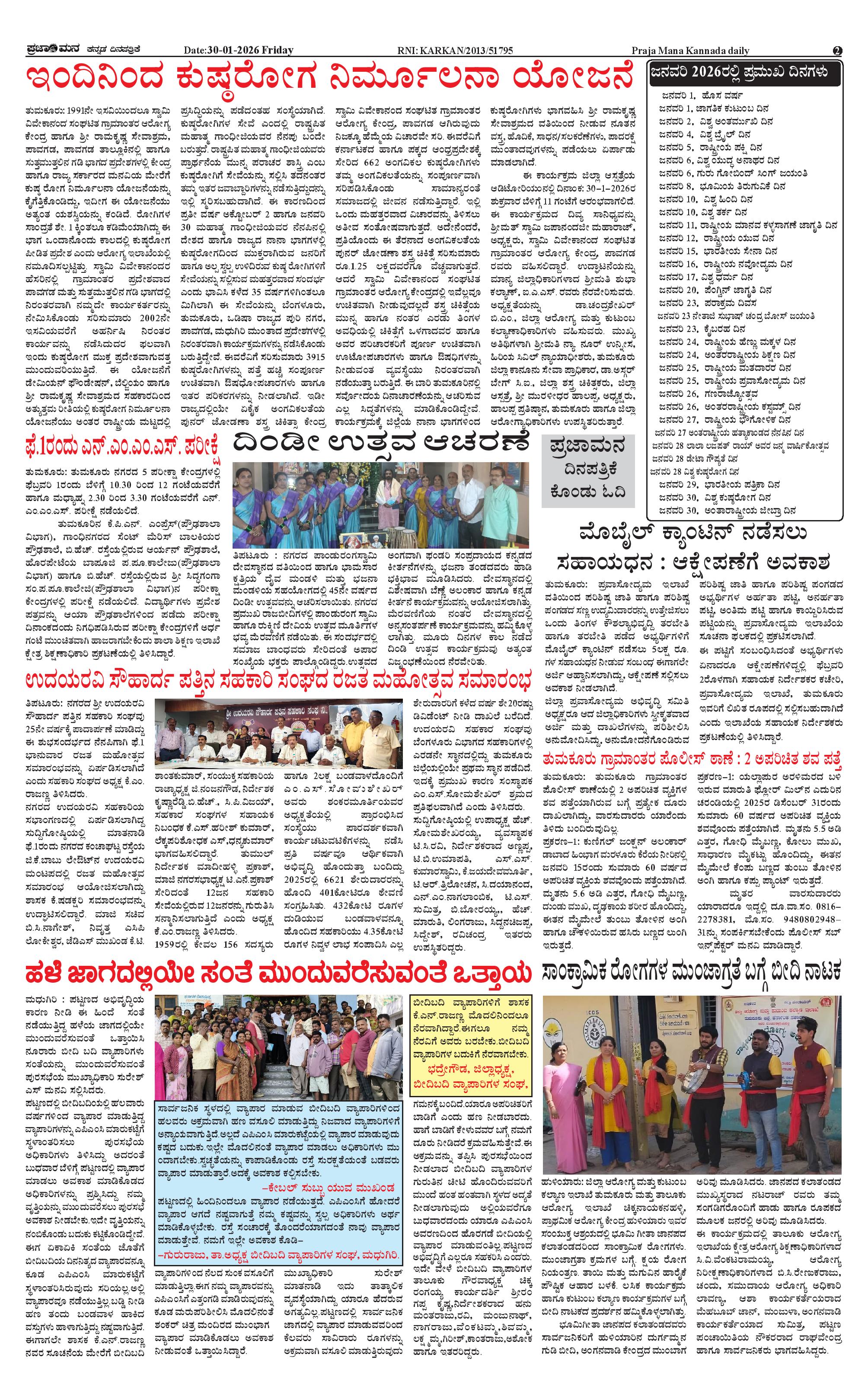 ಪ್ರಜಾಮನ 30 JANUARY 2026 Page: 2 January 30, 2026 << First << 2 >> Last >> Page 1Page 2Page 3Page 4 × ಪ್ರಜಾಮನ 30 JANUARY 2026 PRAJAMANA-page-001PRAJAMANA-page-002PRAJAMANA-page-003PRAJAMANA-page-004 << First << 2 >> Last >> PRAJAMANA-page-001PRAJAMANA-page-002PRAJAMANA-page-003PRAJAMANA-page-004 PRAJAMANA-page-002