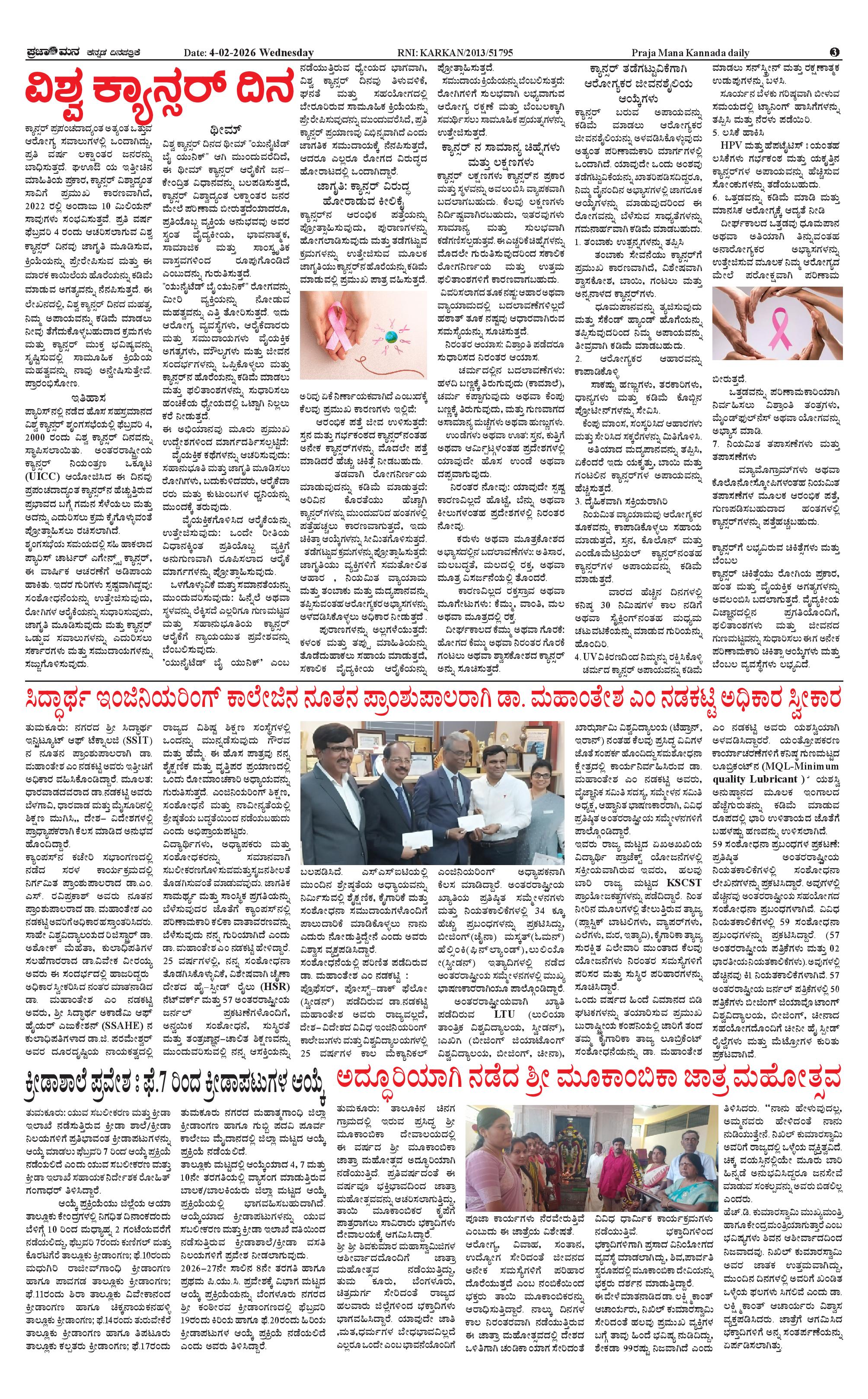 ಪ್ರಜಾಮನ 04 FEBRUARY 2026 Page: 3 February 04, 2026 << First << 3 >> Last >> Page 1Page 2Page 3Page 4 × ಪ್ರಜಾಮನ 04 FEBRUARY 2026 PRAJAMANA-page-001PRAJAMANA-page-002PRAJAMANA-page-003PRAJAMANA-page-004 << First << 3 >> Last >> PRAJAMANA-page-001PRAJAMANA-page-002PRAJAMANA-page-003PRAJAMANA-page-004 PRAJAMANA-page-003