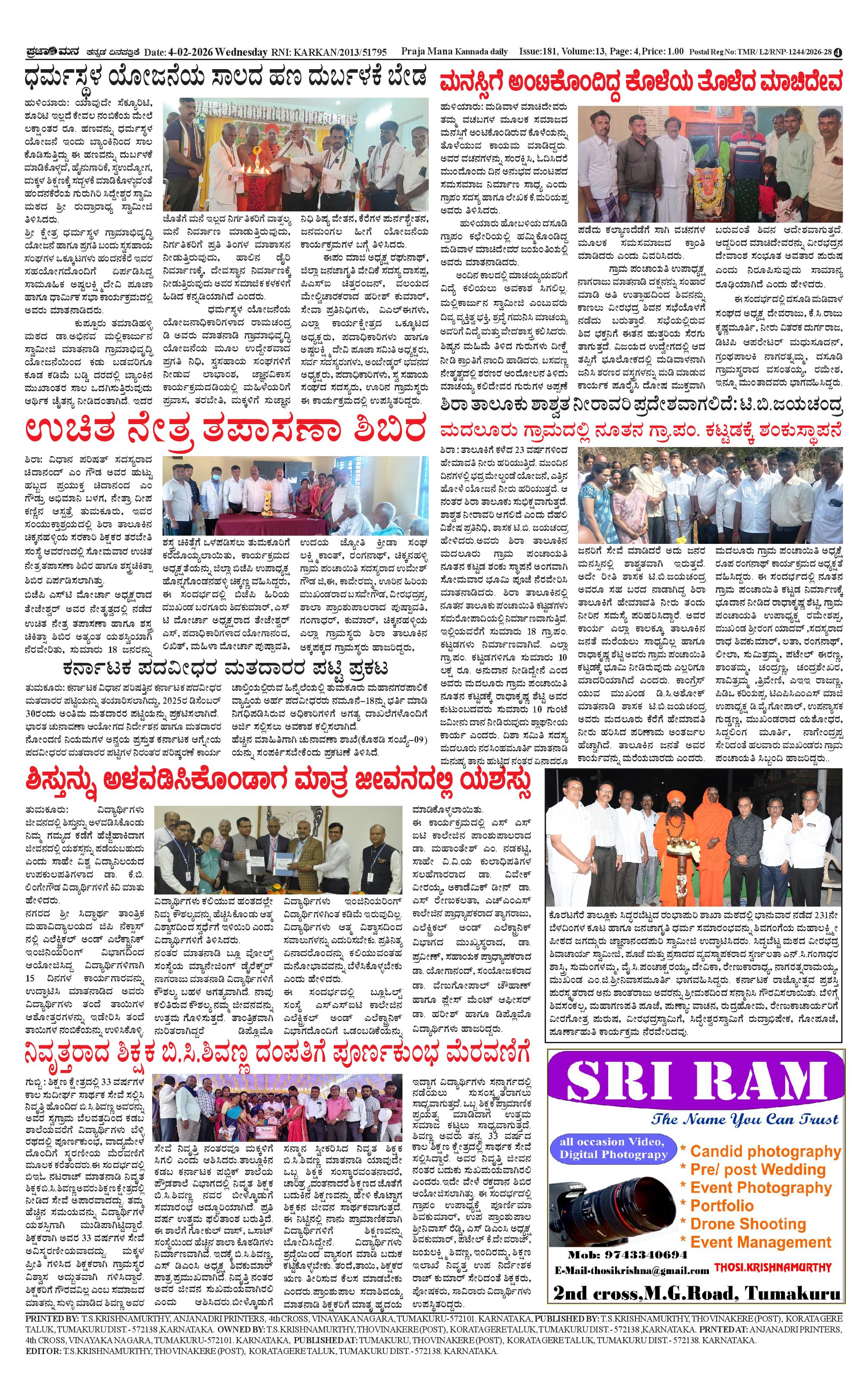 ಪ್ರಜಾಮನ 04 FEBRUARY 2026 Page: 4 February 04, 2026 << First << 4 >> Last >> Page 1Page 2Page 3Page 4 × ಪ್ರಜಾಮನ 04 FEBRUARY 2026 PRAJAMANA-page-001PRAJAMANA-page-002PRAJAMANA-page-003PRAJAMANA-page-004 << First << 4 >> Last >> PRAJAMANA-page-001PRAJAMANA-page-002PRAJAMANA-page-003PRAJAMANA-page-004 PRAJAMANA-page-004