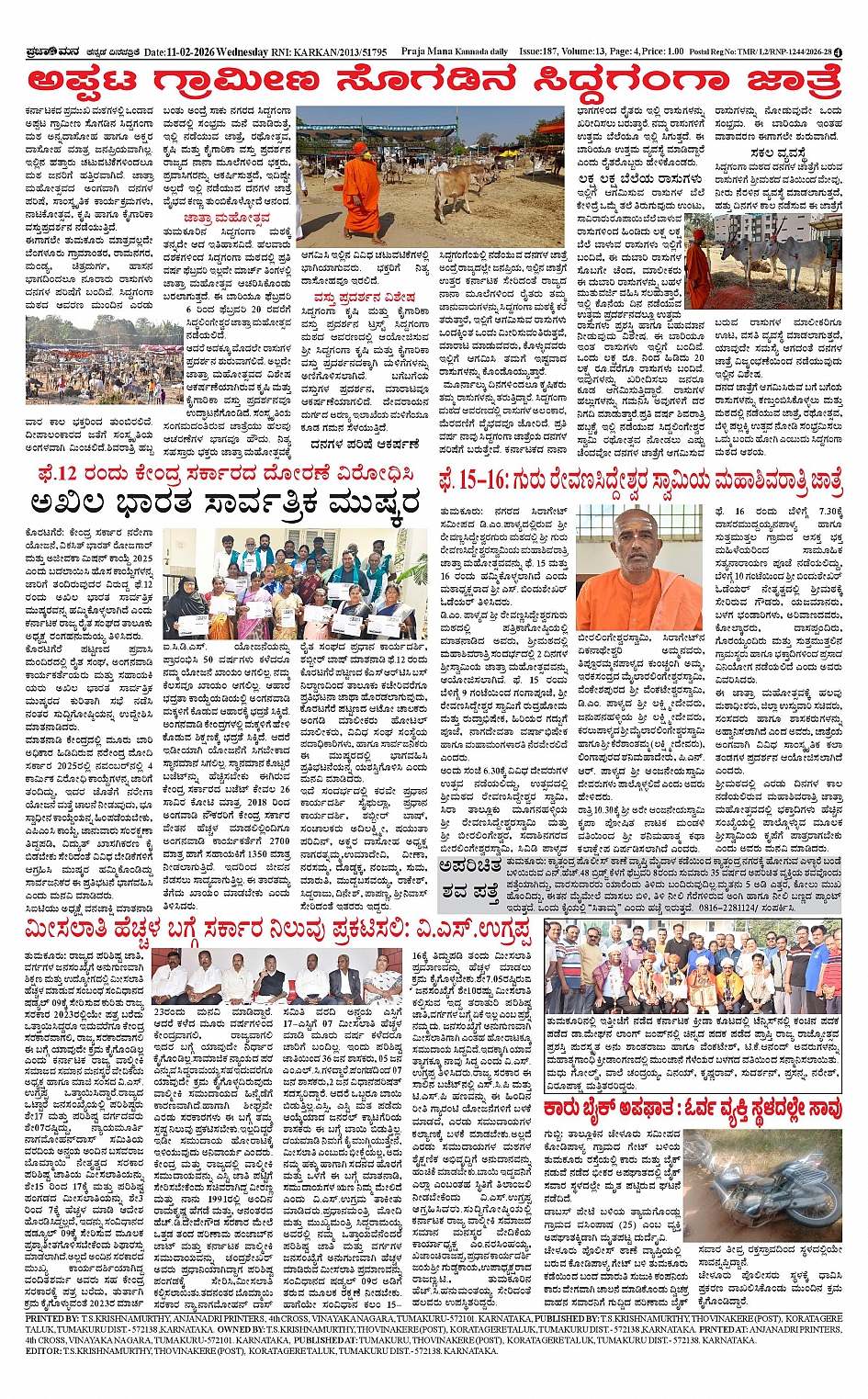 ಪ್ರಜಾಮನ 11 FEBRUARY 2026 Page: 4 February 11, 2026 << First << 4 >> Last >> Page 1Page 2Page 3Page 4 × ಪ್ರಜಾಮನ 11 FEBRUARY 2026 PRAJAMANA-page-001PRAJAMANA-page-002PRAJAMANA-page-003PRAJAMANA-page-004 << First << 4 >> Last >> PRAJAMANA-page-001PRAJAMANA-page-002PRAJAMANA-page-003PRAJAMANA-page-004 PRAJAMANA-page-004
