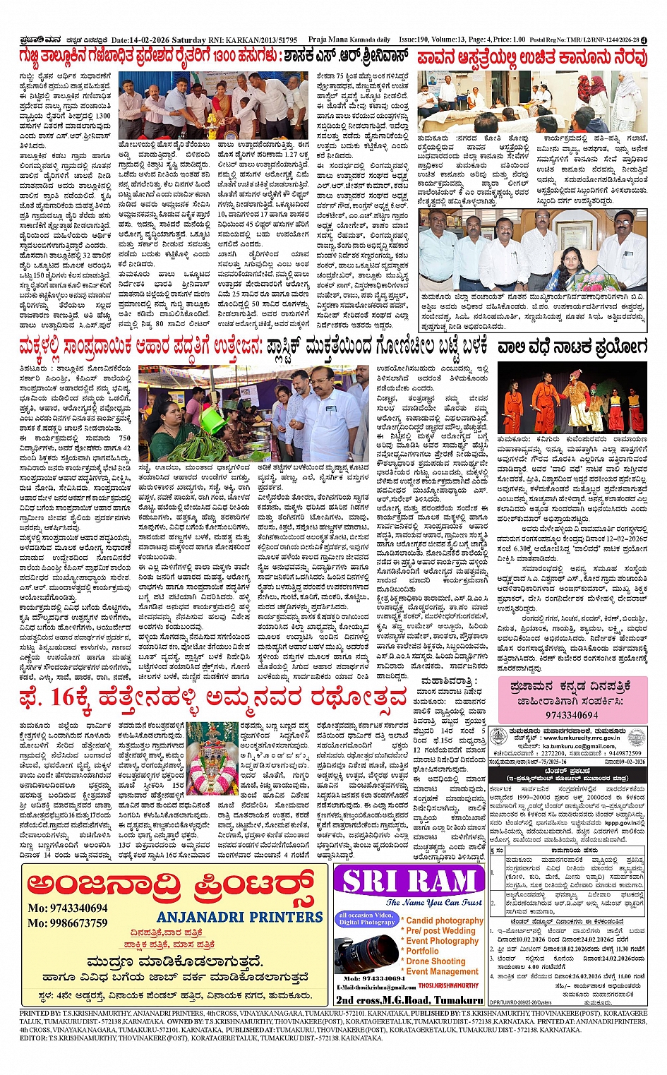 ಪ್ರಜಾಮನ 14 FEBRUARY 2026 Page: 4 February 14, 2026 << First << 4 >> Last >> Page 1Page 2Page 3Page 4 × ಪ್ರಜಾಮನ 14 FEBRUARY 2026 PRAJAMANA-page-001PRAJAMANA-page-002 (1)PRAJAMANA-page-003 (1)PRAJAMANA-page-004 << First << 4 >> Last >> PRAJAMANA-page-001PRAJAMANA-page-002 (1)PRAJAMANA-page-003 (1)PRAJAMANA-page-004 PRAJAMANA-page-004