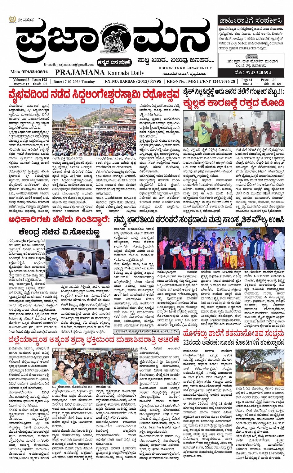 ಪ್ರಜಾಮನ 17 FEBRUARY 2026 February 17, 2026 << First << 1 >> Last >> Page 1Page 2Page 3Page 4 × ಪ್ರಜಾಮನ 17 FEBRUARY 2026 PRAJAMANA-page-001 (1)PRAJAMANA-page-002PRAJAMANA-page-003PRAJAMANA-page-004 (1) << First << 1 >> Last >> PRAJAMANA-page-001 (1)PRAJAMANA-page-002PRAJAMANA-page-003PRAJAMANA-page-004 (1) PRAJAMANA-page-001 (1)