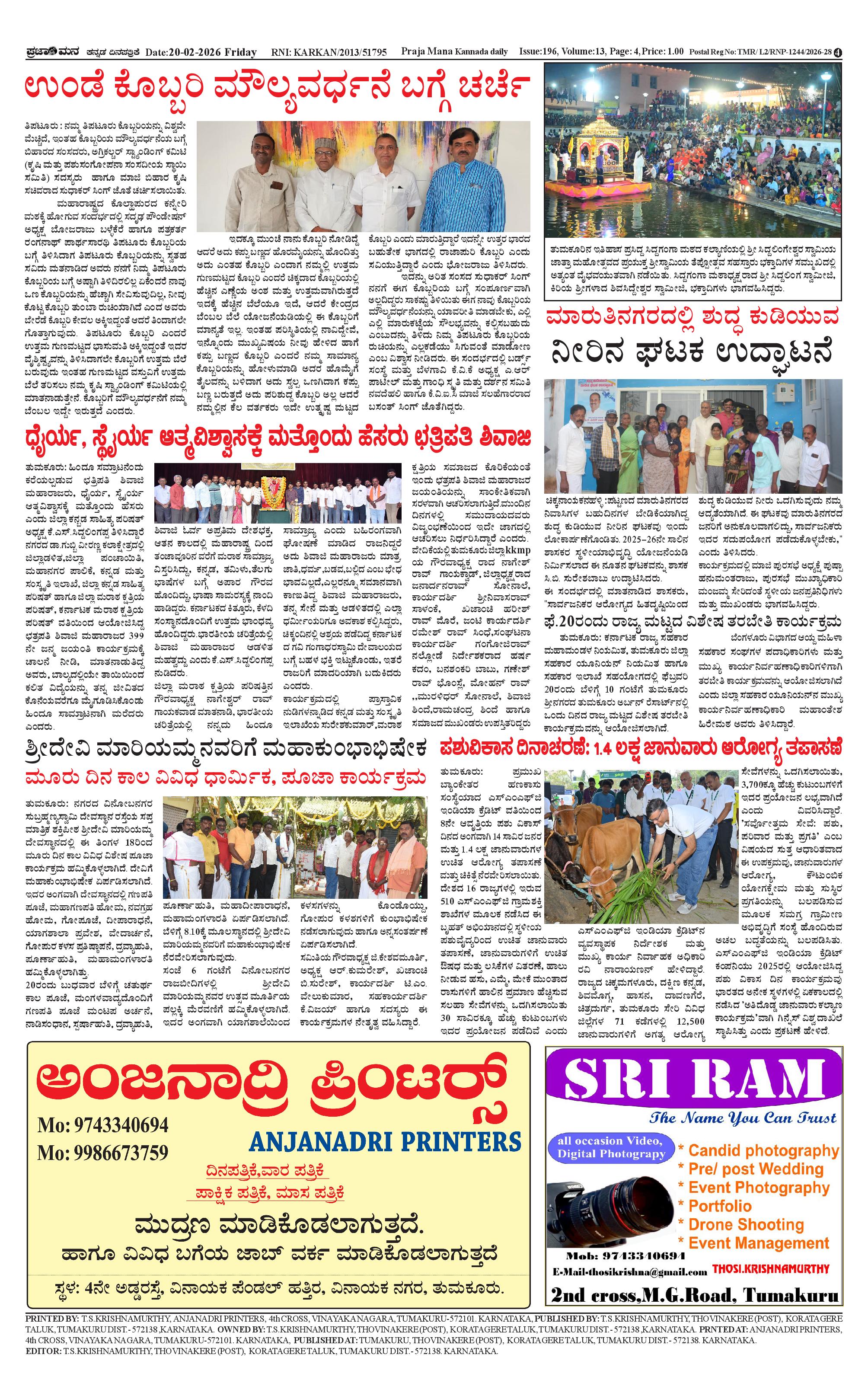 ಪ್ರಜಾಮನ 20 FEBRUARY 2026 Page: 4 February 20, 2026 << First << 4 >> Last >> Page 1Page 2Page 3Page 4 × ಪ್ರಜಾಮನ 20 FEBRUARY 2026 PRAJAMANA-page-001PRAJAMANA-page-002PRAJAMANA-page-003PRAJAMANA-page-004 << First << 4 >> Last >> PRAJAMANA-page-001PRAJAMANA-page-002PRAJAMANA-page-003PRAJAMANA-page-004 PRAJAMANA-page-004