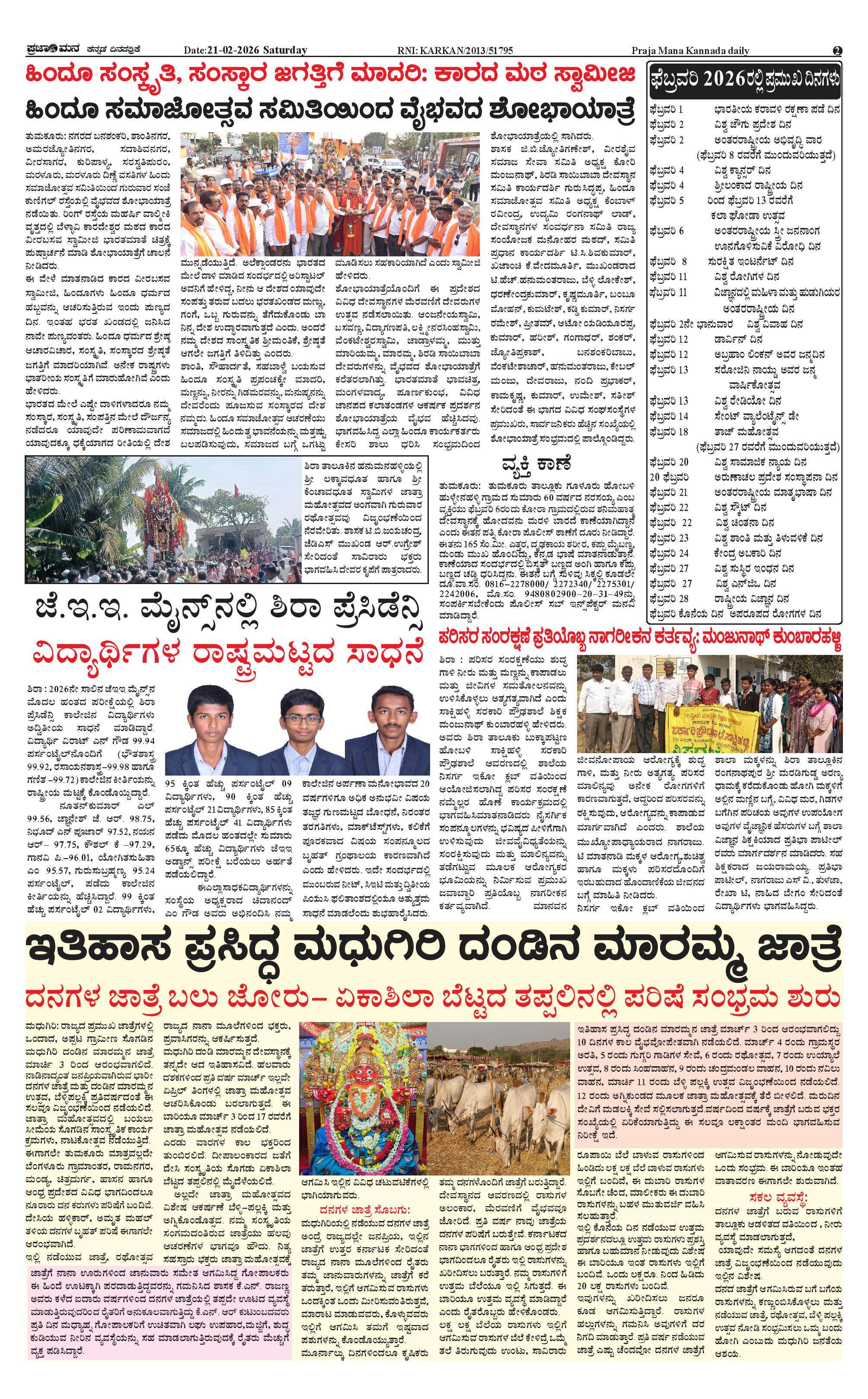 ಪ್ರಜಾಮನ 21 FEBRUARY 2026 Page: 2 February 21, 2026 << First << 2 >> Last >> Page 1Page 2Page 3Page 4 × ಪ್ರಜಾಮನ 21 FEBRUARY 2026 PRAJAMANA-page-001PRAJAMANA-page-002 (1)PRAJAMANA-page-003 (1)PRAJAMANA-page-004 << First << 2 >> Last >> PRAJAMANA-page-001PRAJAMANA-page-002 (1)PRAJAMANA-page-003 (1)PRAJAMANA-page-004 PRAJAMANA-page-002 (1)
