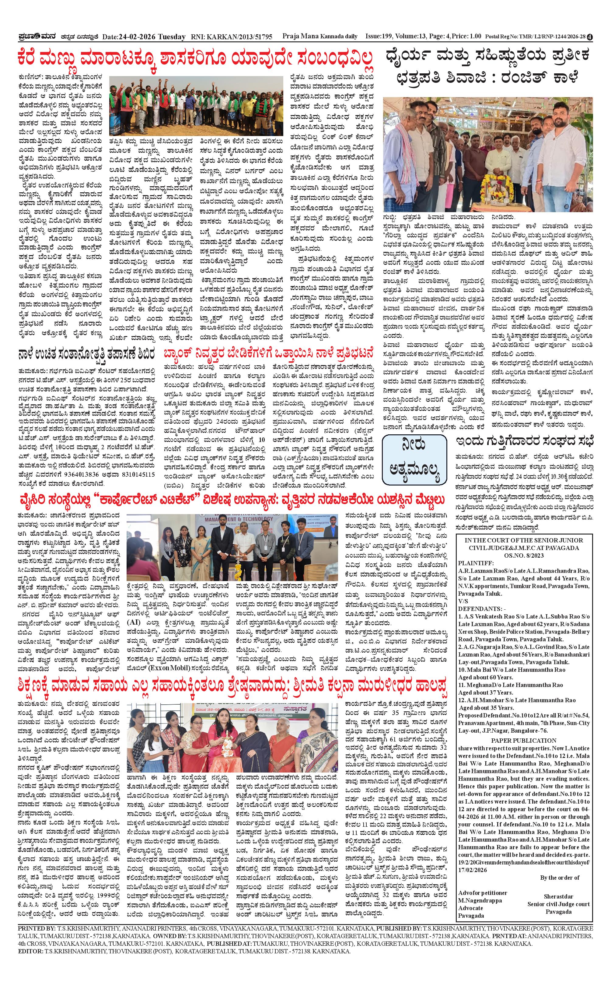 ಪ್ರಜಾಮನ 24 FEBRUARY 2026 Page: 4 February 24, 2026 << First << 4 >> Last >> Page 1Page 2Page 3Page 4 × ಪ್ರಜಾಮನ 24 FEBRUARY 2026 PRAJAMANA-page-001PRAJAMANA-page-002PRAJAMANA-page-003PRAJAMANA-page-004 << First << 4 >> Last >> PRAJAMANA-page-001PRAJAMANA-page-002PRAJAMANA-page-003PRAJAMANA-page-004 PRAJAMANA-page-004