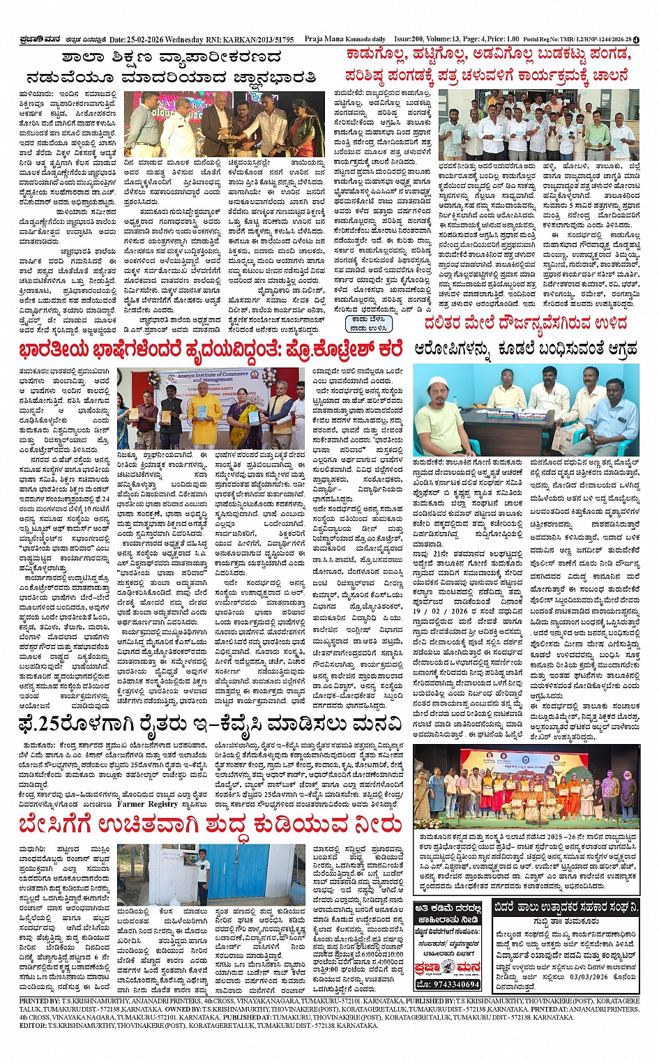 ಪ್ರಜಾಮನ 25 FEBRUARY 2026 Page: 4 February 25, 2026 << First << 4 >> Last >> Page 1Page 2Page 3Page 4 × ಪ್ರಜಾಮನ 25 FEBRUARY 2026 PRAJAMANA-page-001PRAJAMANA-page-002PRAJAMANA-page-003PRAJAMANA-page-004 << First << 4 >> Last >> PRAJAMANA-page-001PRAJAMANA-page-002PRAJAMANA-page-003PRAJAMANA-page-004 PRAJAMANA-page-004