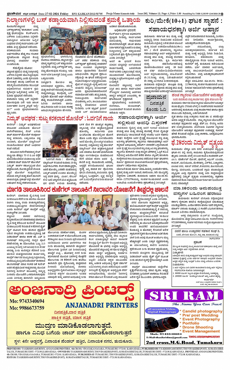 ಪ್ರಜಾಮನ 27 FEBRUARY 2026 Page: 4 February 27, 2026 << First << 4 >> Last >> Page 1Page 2Page 3Page 4 × ಪ್ರಜಾಮನ 27 FEBRUARY 2026 PRAJAMANA-page-001PRAJAMANA-page-002PRAJAMANA-page-003PRAJAMANA-page-004 << First << 4 >> Last >> PRAJAMANA-page-001PRAJAMANA-page-002PRAJAMANA-page-003PRAJAMANA-page-004 PRAJAMANA-page-004